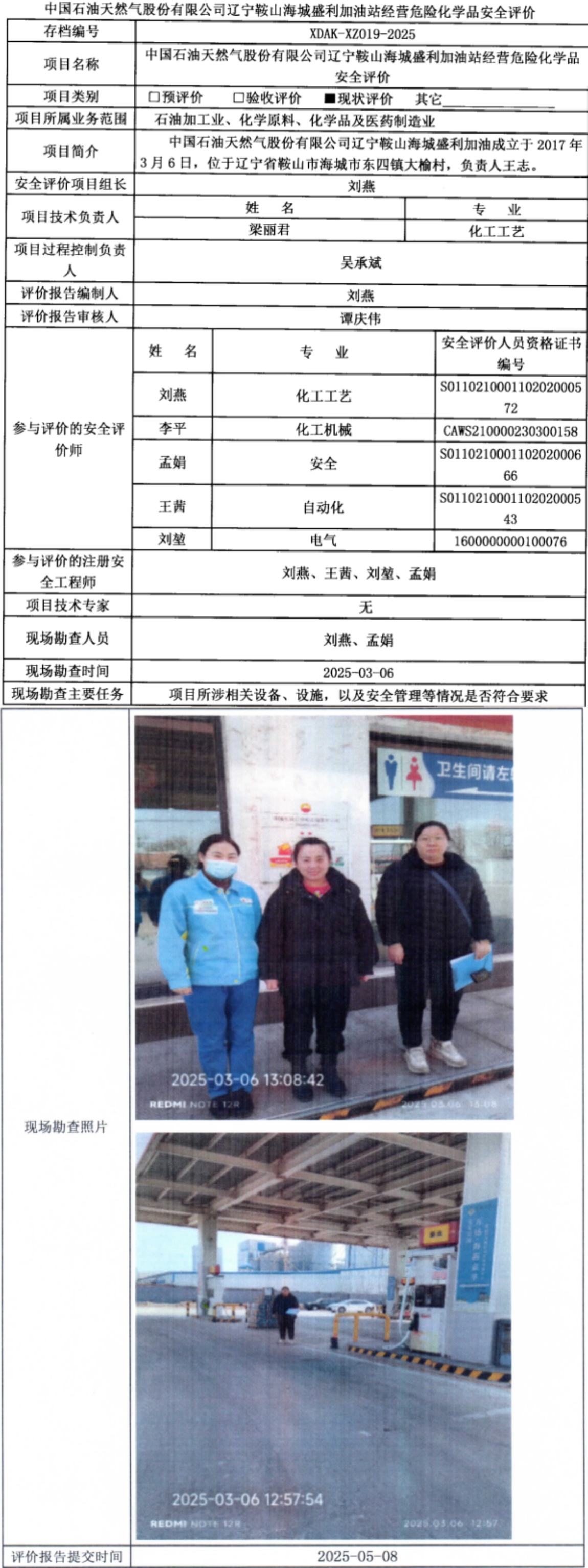 中国石油天然气股份有限公司辽宁鞍山海城盛利加油站经营危险化学品安全评价