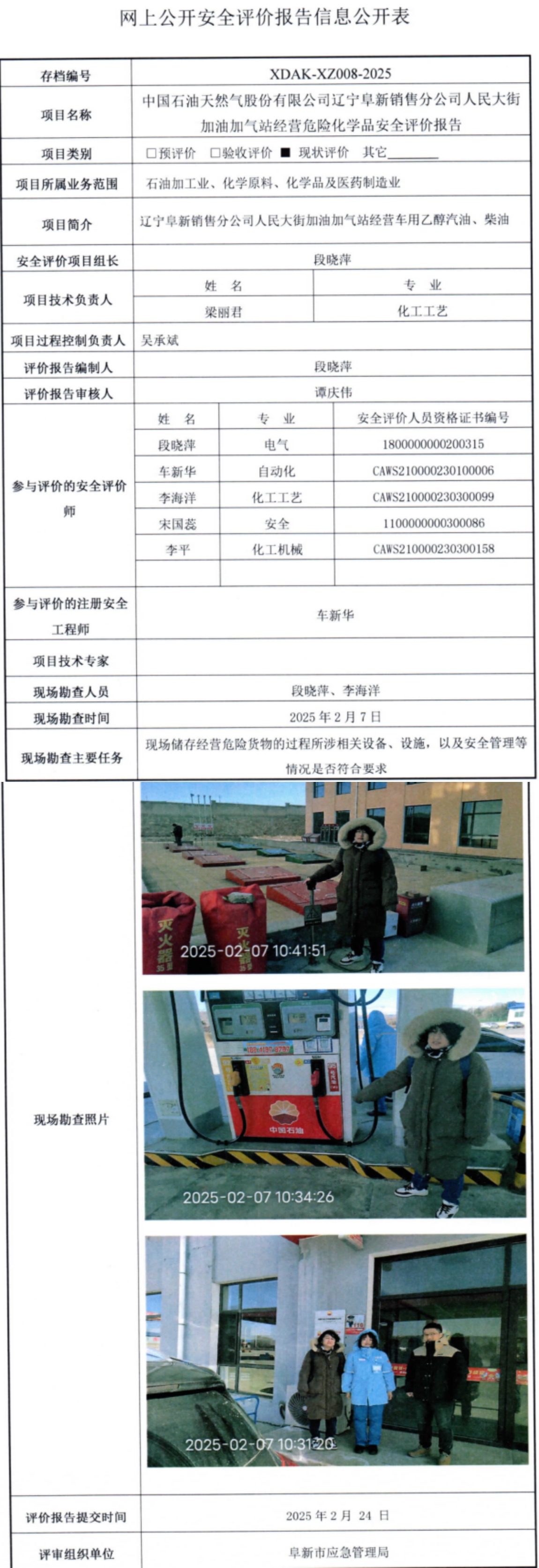 中国石油天然气股份有限公司辽宁阜新销售分公司人民大街加油加气站经营危险化学品安全评价报告