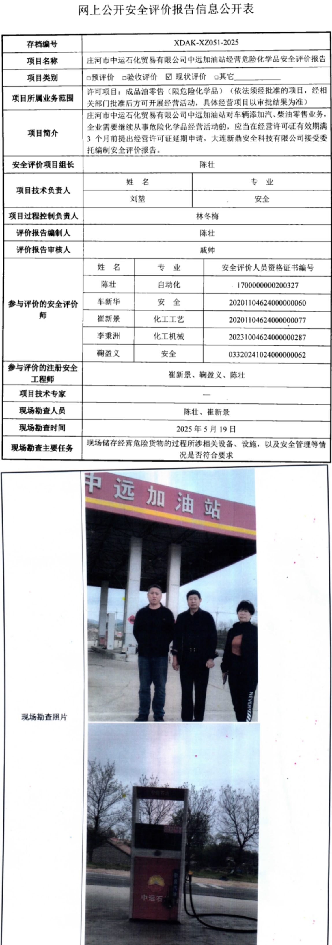 庄河市中运石化贸易有限公司中远加油站经营危险化学品安全评价报告