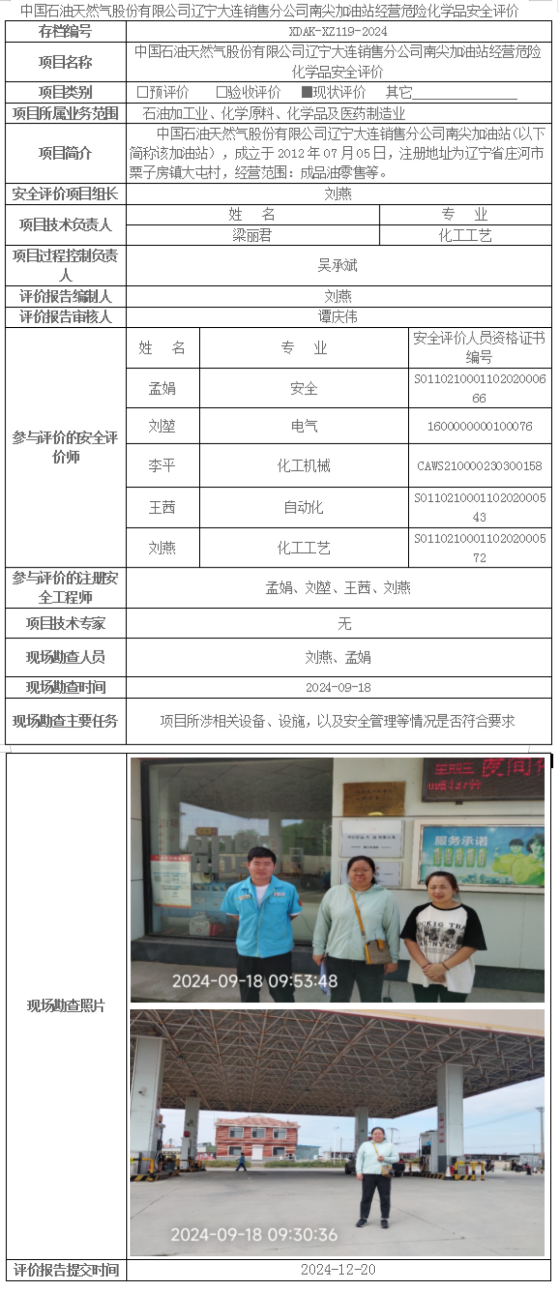 中国石油天然气股份有限公司辽宁大连销售分公司南尖加油站经营危险化学品安全评价