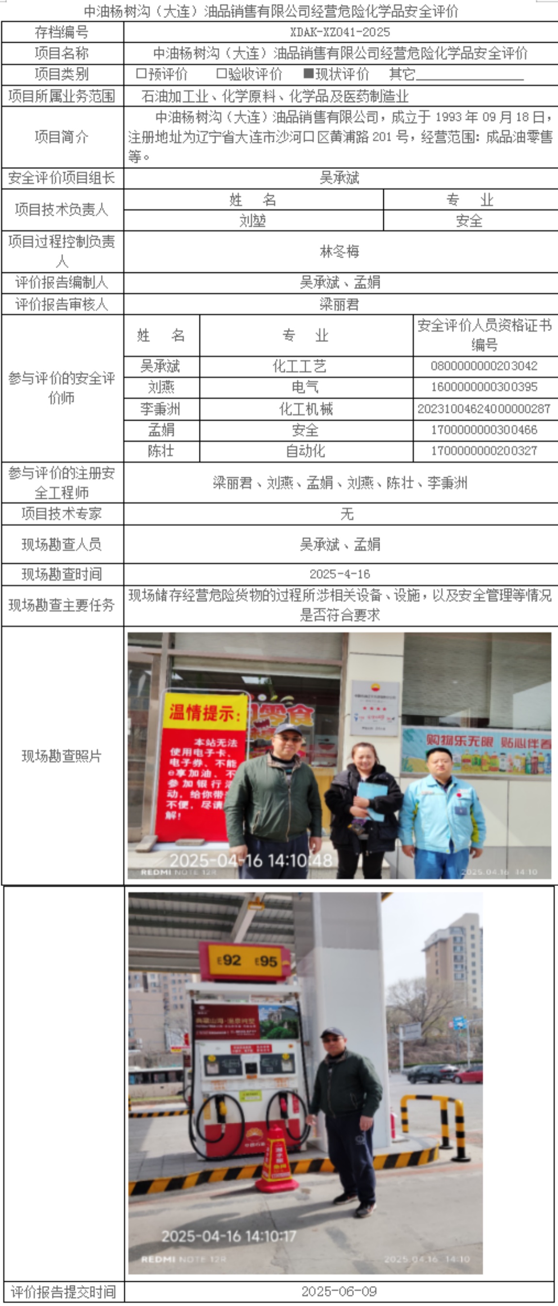 中油杨树沟(大连)油品销售有限公司经营危险化学品安全评价