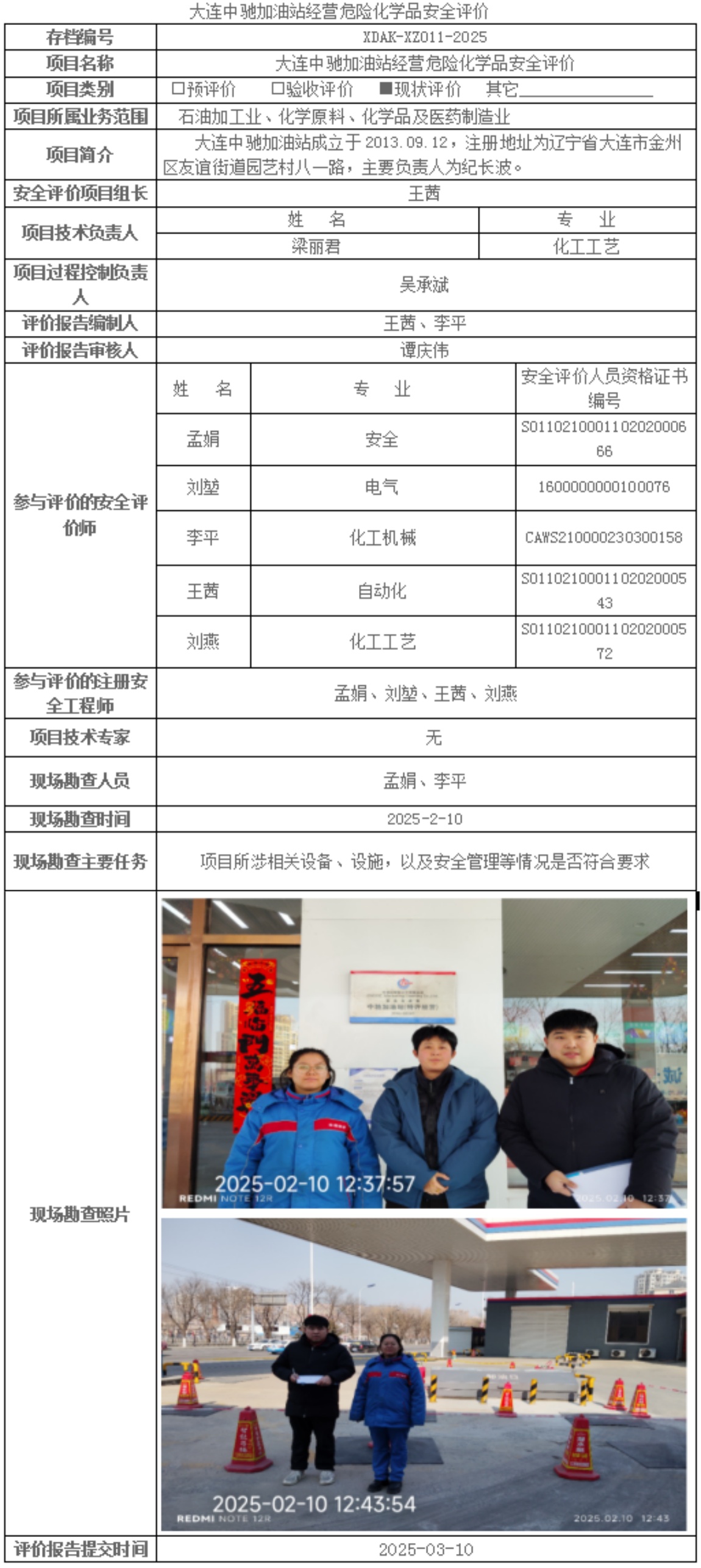 上一条:中国石油天然气股份有限公司辽宁大连销售分公司王家加油站经营危险化学品安全评价
