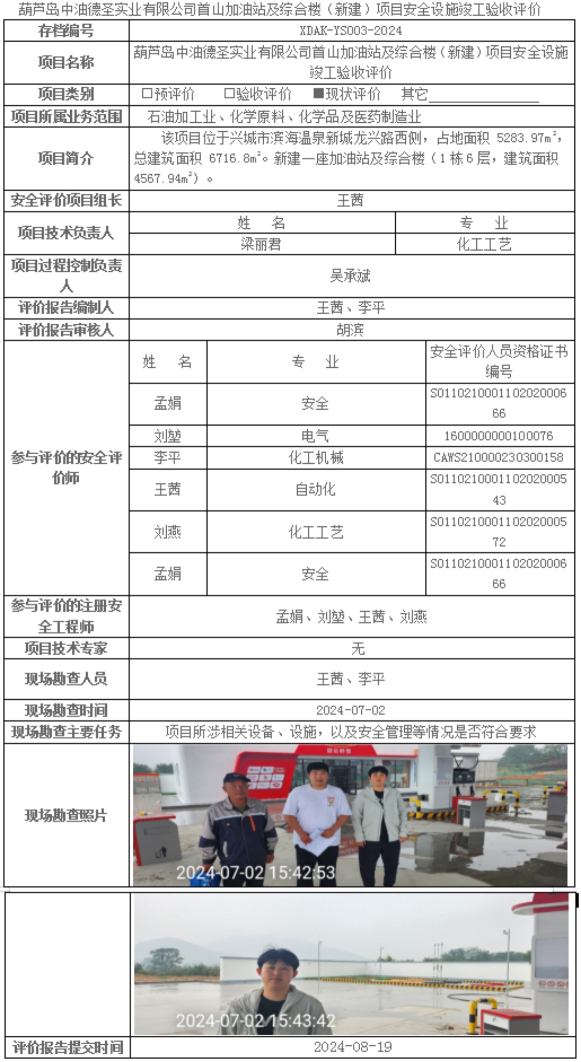 葫芦岛中油德圣实业有限公司首山加油站及综合楼(新建)项目安全设施竣工验收评价