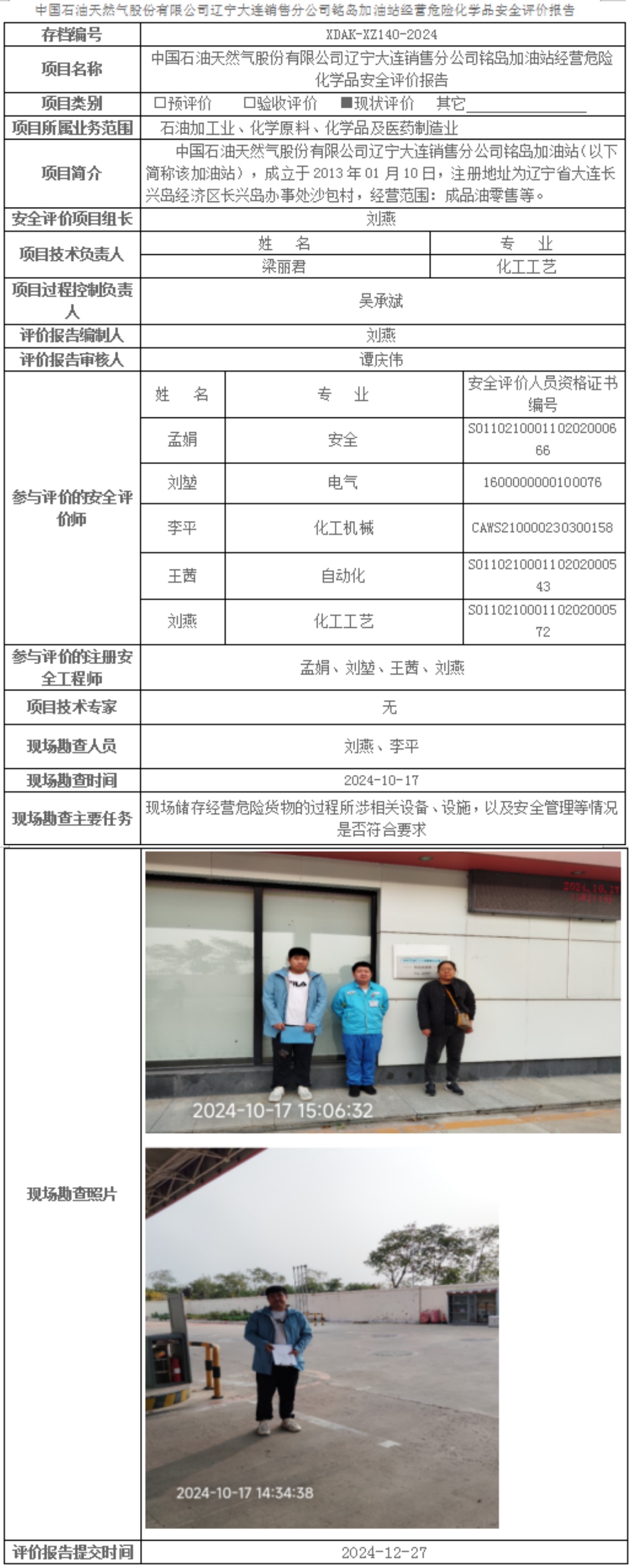 中国石油天然气股份有限公司辽宁大连销售分公司铭岛加油站经营危险化学品安全评价报告