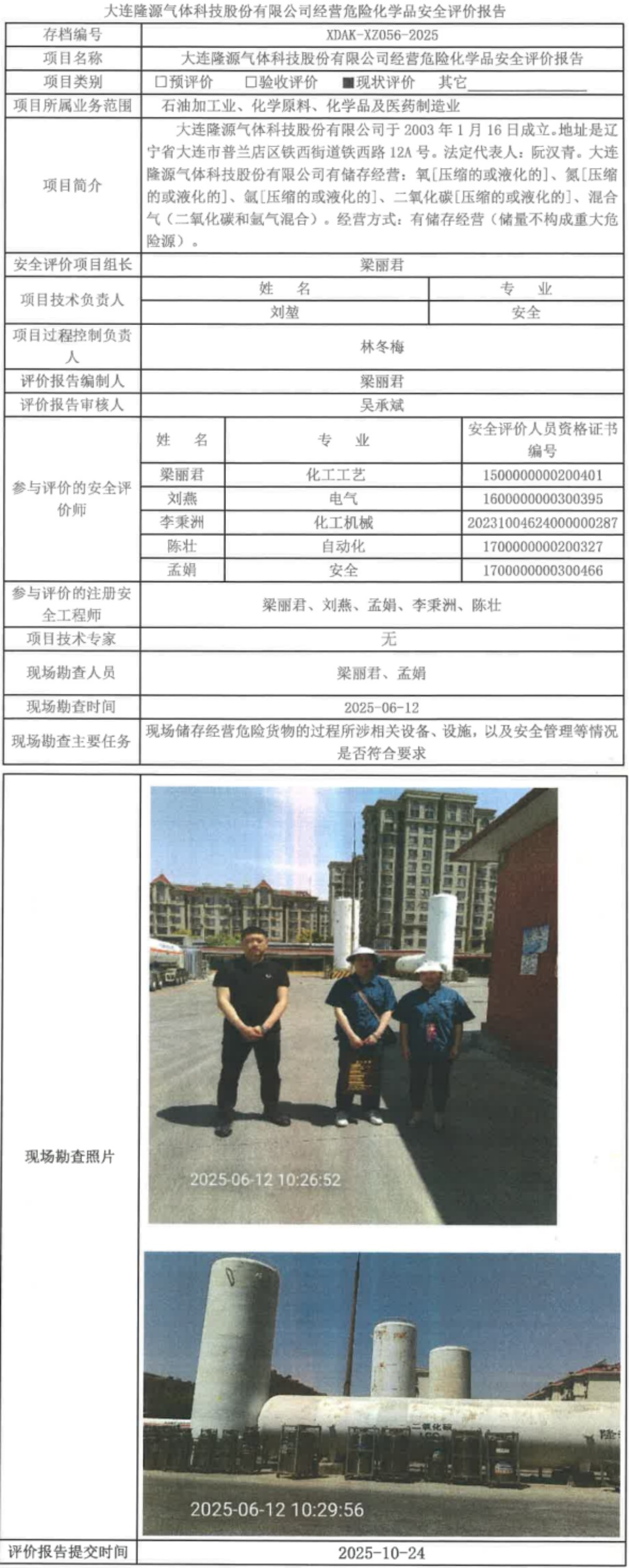 大连隆源气体科技股份有限公司 经营危险化学品安全评价报告
